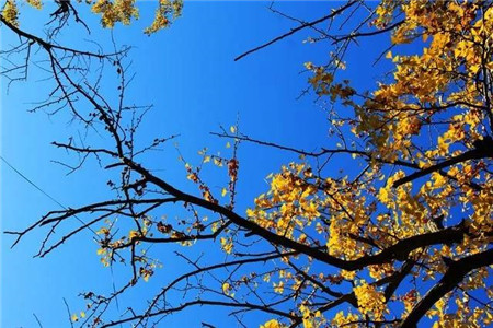 秋天的白河鎮(zhèn)是純色系的,兩旁的銀杏樹被微風(fēng)吹得沙沙作響,午后的陽光從兩棵樹之間均勻的穿過,趕上一個好天兒,湛藍(lán)透凈的天空也甘作畫面的背景。