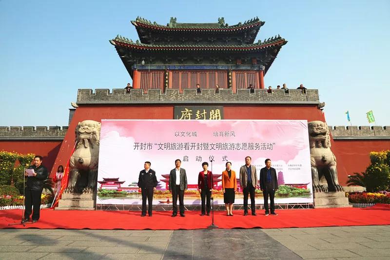 為大力弘揚社會主義核心價值觀,促進文明旅游理念深入人心,提升市民文明程度和整體素質(zhì),助力開封市文明城市創(chuàng)建工作,10月31日上午,由開封市旅游委聯(lián)合市文明辦、團市委、市城管局、市民政局、市公安局開展的“文明旅游看開封暨文明旅游志愿服務(wù)”啟動儀式在開封府門前廣場隆重舉行。市旅游委主任薛冬、共青團開封市委副書記陳嘉慧、市城市管理局(市綜合執(zhí)法局)副局長王新周、市民政局副局長郁正國、市公安局旅游景區(qū)巡防大隊大隊長王廣忠;開封府旅游開發(fā)有限公司董事長段朝現(xiàn)參加了啟動儀式。啟動儀式由市旅游委副主任華應(yīng)根主持。