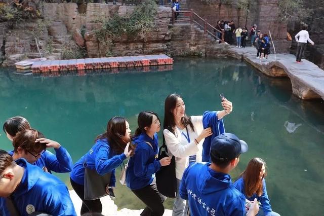 云臺山獨(dú)特的地質(zhì)地貌、丹崖碧水峽谷奇觀,令留學(xué)生們贊嘆不已。他們不時駐足拍照,開心合影。