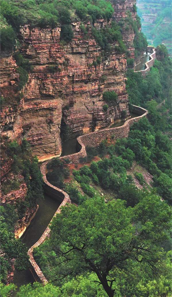 自力更生、艱苦創(chuàng)業(yè)的背后,閃耀著人民群眾創(chuàng)新創(chuàng)造的光芒。紅旗渠開鑿在懸崖峭壁上,蜿蜒曲折繞山而行,把遙遠的漳河水引入林縣大地,既離不開總設計師楊貴跳出縣域找出路的創(chuàng)造性決策,也離不開總指揮長馬有金、技術員吳祖太、“除險隊長”任羊成、“神炮手”常根虎、“鑿洞能手”王師存、農民水利技術員路銀等為代表的修渠人的創(chuàng)新創(chuàng)造智慧?偢汕䦶那椎椒炙畮X70多公里,落差僅有14.7米,且渠線全部位于懸崖峭壁上,測量和施工精度要求很高。吳祖太作為唯一的技術員,帶著一批邊學邊干的“泥腿子”,使用一臺簡陋的測量儀器,居然成功完成了這一堪稱奇跡的挑戰(zhàn)。工地上處處活躍著“土專家”,他們敢想敢干,不斷創(chuàng)造傳奇。比如,為了解決總干渠與濁河交叉的矛盾,別出心裁設計建造了一個“壩中過渠水,壩上流河水”的空心壩,讓渠水不犯河水;修建桃園渡槽時發(fā)明了“簡易拱架法”不僅省工省料,還設計成“槽下走洪水、槽中過渠水、槽上能行車”的“桃園渡橋”,構思堪比南京長江大橋;山上壘砌渠墻需要大量物料,僅靠人拉肩扛效率低下,就土法上馬空中架起“空運線”,把石灰、沙、水等從山下直送山上工地;開渠鑿洞挖出了大量碴石,于是變廢為寶沿渠修建道路,既不使廢碴壓地,又可以渠帶路、以路帶林,兩全其美;緊挨著工地露天明窯燒石灰,一窯能出2000噸,不僅滿足了砌渠所需,還節(jié)省了成本、運力;劈山開渠買不起炸藥便多積有機肥,節(jié)省下來的化肥硝酸銨按比例配上鋸末、干牛糞、煤面碾碎自制炸藥,威力一點不小。依靠勤勞智慧的雙手迎難而上,這些平凡的人創(chuàng)造了不平凡的業(yè)績,他們留下的豈止是一條物理意義上的渠?