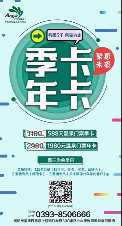 溫泉門票年卡:原價2980元,優(yōu)惠價1980元