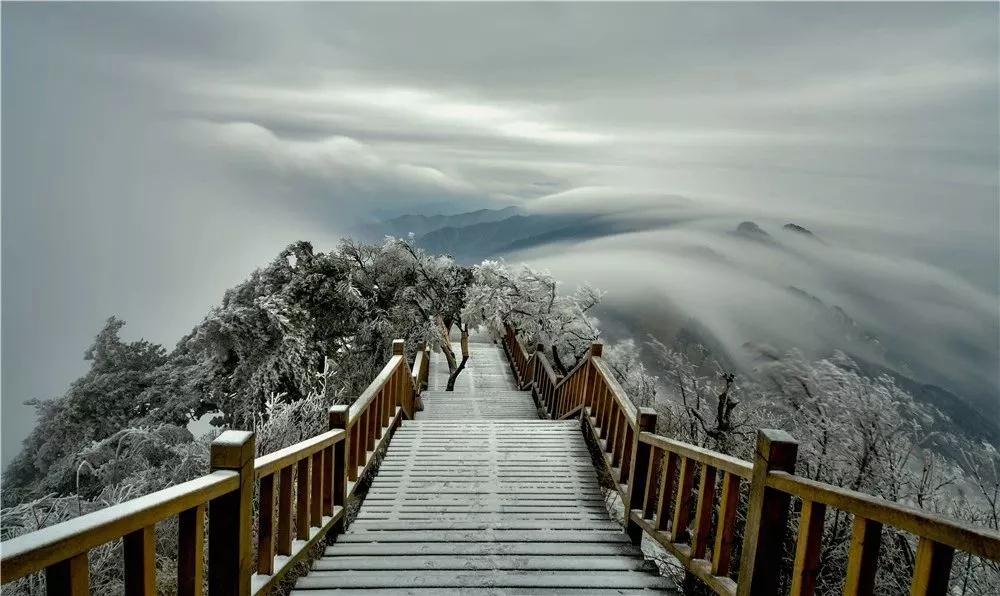 高海拔使老君山每年冬天的雪都有比別的地方來得早一些,且雪質(zhì)好,不易融化。雪后初晴,白雪皚皚,銀裝素裹,山舞銀蛇,隨手一拍都是大片兒風范。