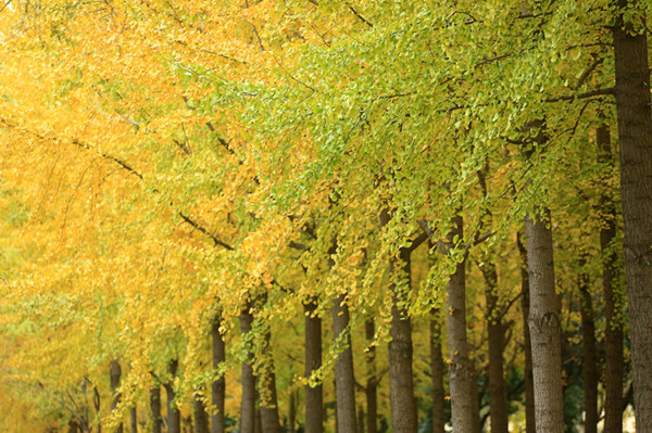 鄭州雕塑公園工作人員介紹,該公園的南廣場、林蔭廣場及主游路,均種植有不少銀杏樹,如今正是欣賞銀杏美景的最佳時(shí)期,不少游客和市民來到該園拍照。據(jù)介紹,銀杏樹高大挺拔,葉似扇形,葉形古雅,壽命綿長,夏天遒勁蔥綠,秋季金黃可掬,給人以峻峭雄奇、高雅華貴之感。銀杏樹黃時(shí),一邊呈露讓人炫目的金色,一邊飄灑下無數(shù)的落葉,鋪成一地錦繡,英姿颯爽,如兵至城中,滿城盡帶黃金甲,波瀾壯闊又從容自如。