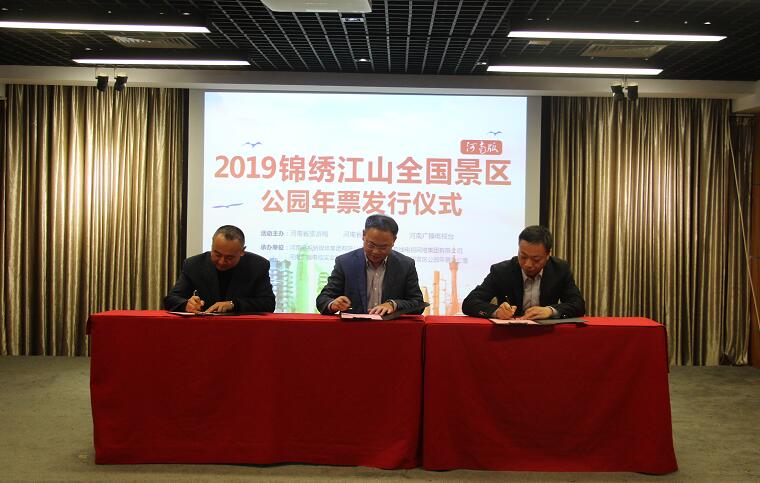 發(fā)行儀式上, 河南有線電視網(wǎng)絡(luò)集團(tuán)、河南廣播電視實(shí)業(yè)發(fā)展有限公司、河南錦繡江山中南科技有限公司三方舉行合作簽約儀式。并現(xiàn)場向全國先進(jìn)工作者河南省檢察院干部白潔、全國抗震救災(zāi)模范河南省新聞出版廣電局網(wǎng)絡(luò)視聽節(jié)目管理處副處長劉存志、全國五一獎?wù)芦@得者河南省工商局辦公室主任科員陸詩琴、全國優(yōu)秀農(nóng)民工張紅亮、全國物流系統(tǒng)勞動模范張保環(huán)、交通系統(tǒng)的勞動模范王麗贈送了旅游年票。另外,2018年12月1日至2019年2月28日,2016、2017年度省級、國家級勞動模范、先進(jìn)工作者憑獲獎榮譽(yù)證書、工作證、身份證等有效證件,每人可獲贈兩張“2019錦繡江山全國景區(qū)公園年票”,在全省18個省轄市河南有線營業(yè)廳領(lǐng)取。