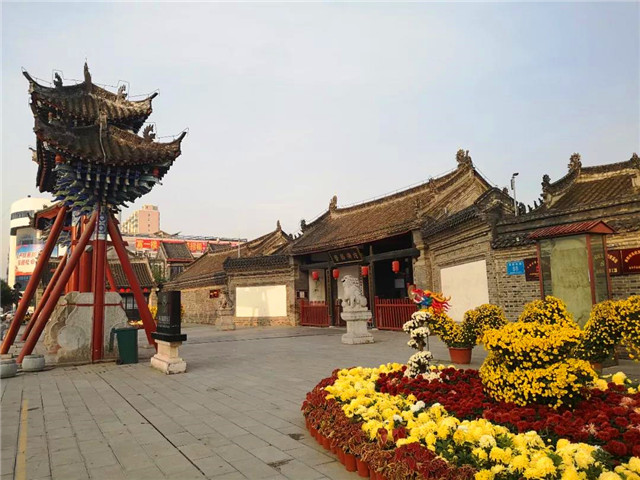 鳳尾竹、桂花樹等常青植物顯得格外青翠欲滴。擺放整齊的菊花格外精神抖擻,黃的更黃,紅的更紅,白的更白,菊花上的雨珠晶瑩剔透。青苔、小草從磚縫中躍身而出,顯得頗有生機(jī)。