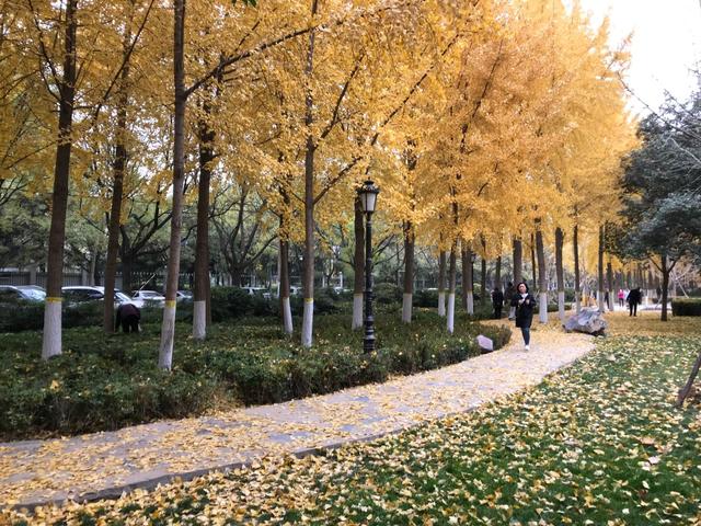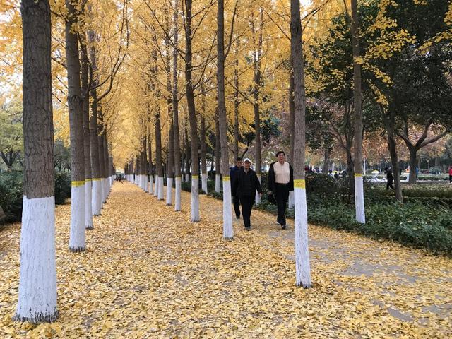 不少晨練者們反復(fù)在銀杏林中間的小道上穿梭,流連忘返。