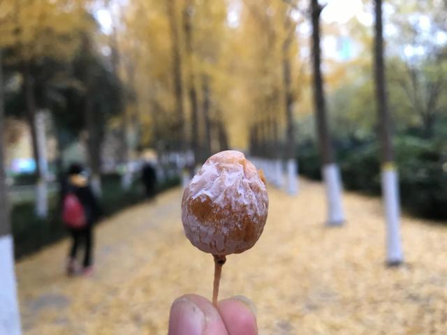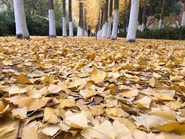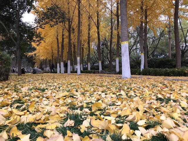 早上,在文博廣場的銀杏林下,一片金黃,鋪滿了一層銀杏葉。