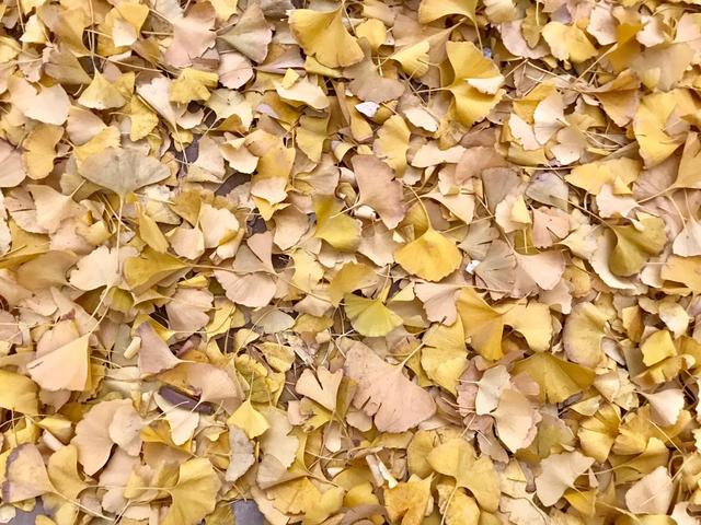 前一天的大風(fēng)把銀杏葉子吹落不少。
