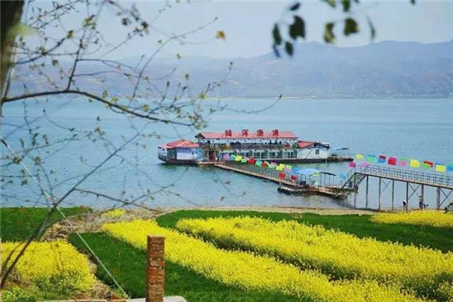 春風(fēng)中,陸渾湖風(fēng)光旖旎。站在千米長堤,望茫茫五萬畝水域,水質(zhì)清純,碧綠清翠,渺渺湖面,碧波蕩游,藍(lán)天白云山峰倒影其中,水天一色。