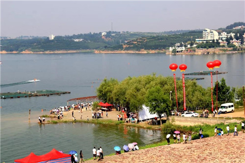 此時(shí)的陸渾湖,游人如織。傍晚時(shí)分,或三個(gè)一群,或五一個(gè)伙兒,或情侶相牽,或夫妻相伴,或扶老或攜幼,倘佯于湖邊,共享人間天倫之樂,共賞人間美景之悅;或蕩舟湖中,玩一把摩托艇如箭一般在浪花中飛行,個(gè)中煩惱隨笑聲盡拋腦后!