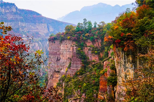 如果你想要俯瞰整個山間的美景,崖邊漫步+高臺俯視,不僅能欣賞冬天的韻味,還能看到難得的藍(lán)天白云。
