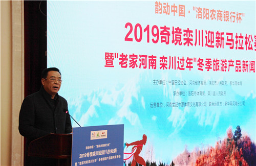 本屆馬拉松賽以“滑雪尋俗泡溫泉,跑馬欒川迎新年”為主題,是欒川舉辦的首屆專業(yè)化馬拉松賽事,由中國田徑協(xié)會、河南省體育局、洛陽市人民政府和新華網(wǎng)體育主辦,洛陽市體育局和欒川縣人民政府承辦,河南世紀(jì)中原體育文化有限公司、新華網(wǎng)河南分公司聯(lián)合運(yùn)營。在發(fā)布會上,欒川縣正式宣布韻動中國·“洛陽農(nóng)商銀行杯”2019奇境欒川迎新馬拉松賽將于2019年元旦鳴槍開跑。同時也標(biāo)志著,欒川冬季旅游活動全面啟動,這是欒川連續(xù)三年舉辦以“老家河南·欒川過年”為主題的冬游季活動。
