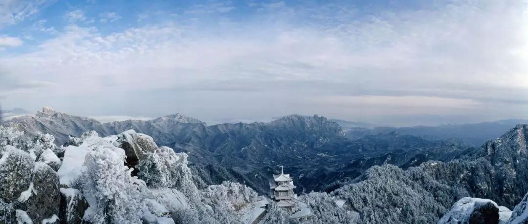 白云山玉皇閣,是觀云海賞日出的最佳場地。雪過天晴,這里云海蒼茫,與高低錯(cuò)落地的群山交相輝映,真正成了海外仙山,瑤池倚窗開,美景不可勝收。