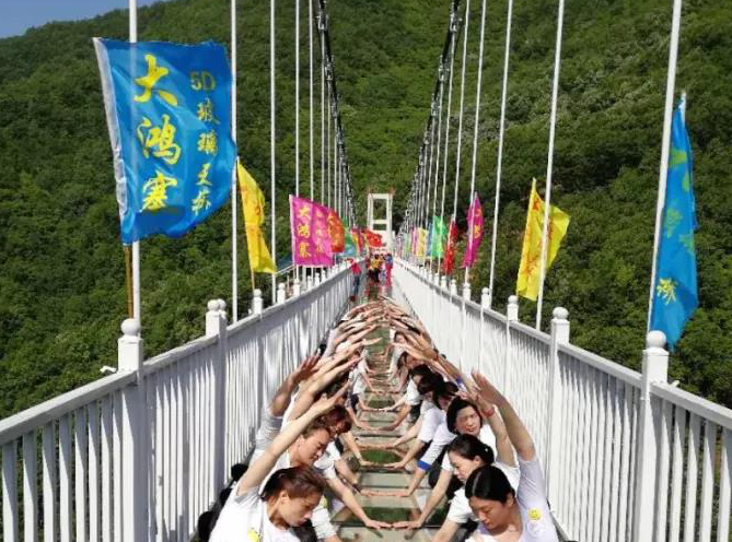 大鴻寨天蓬橋是中原地區(qū)跨度最大、科技含量最高、效果最震撼的5D玻璃天橋,踩上去,腳底伴隨著立體山水畫慢慢鋪展,碎裂特效驚恐不已,“陣陣花香”掠鼻而過,相信全新5D體驗(yàn)更能給您的春節(jié)出游增添別樣樂趣。在天橋旁邊,景區(qū)精心配置下山滑道,驚險體驗(yàn)結(jié)束后,更能體驗(yàn)速度帶給您和朋友的開心之旅。