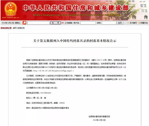 12月10日,住建部網(wǎng)站公示第五批中國(guó)傳統(tǒng)村落名錄,全國(guó)共2646個(gè)村落進(jìn)入公示,河南省78個(gè)村落入選,公示期為12月10日至14日。