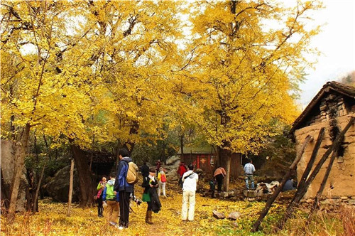 云巖寺千年古銀杏林地處伏牛山主峰龍池曼南麓,位于嵩縣白河鄉(xiāng)下寺村境內(nèi),系伏牛山云巖禪寺遺留下來的一處千年古樹群。這里的銀杏樹高大挺拔,枝繁葉茂,夏天濃陰遮日,秋天碩果累累,深秋季節(jié)滿樹金黃。