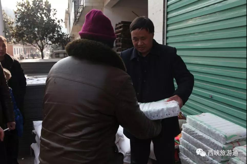 旅游局領(lǐng)導(dǎo)劉正運為貧困戶發(fā)放掛面