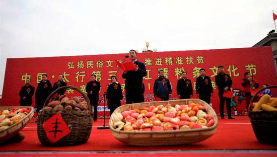 為弘揚(yáng)民族文化,推進(jìn)精準(zhǔn)扶貧,12月22日,中國(guó)太行第三屆紅薯粉條文化節(jié)暨裴寨新村喬遷10周年慶典在河南省輝縣市裴寨社區(qū)廣場(chǎng)隆重舉行。
