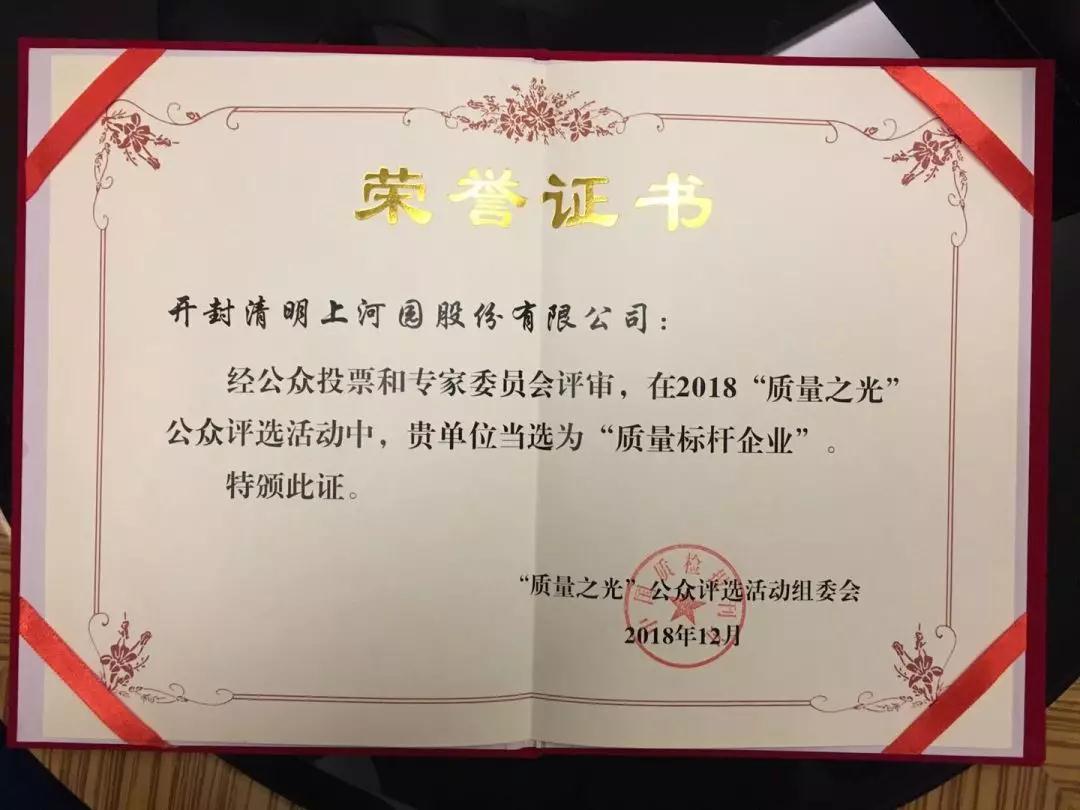 2018“質(zhì)量之光”年度質(zhì)量盛典是一場(chǎng)層次高,權(quán)威高,影響力大的盛典。而開(kāi)封清明上河園股份有限公司在此次盛典上榮獲2018“質(zhì)量之光”年度質(zhì)量標(biāo)桿企業(yè),不僅宣傳了清園高質(zhì)量品牌的良好形象,更是對(duì)“品質(zhì)清園”的肯定。
