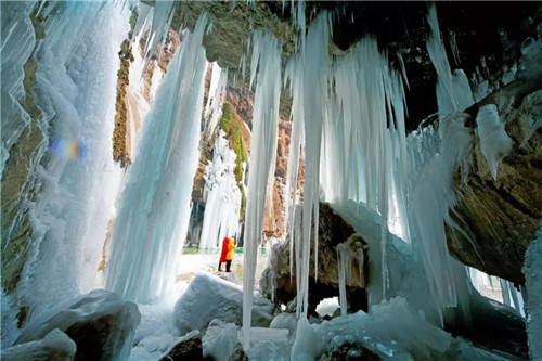 溝谷內(nèi)隨處可見的冰掛,或嵌在崖壁之上,或懸掛于峽谷兩側(cè),屏息凝視,冰花玉樹,美輪美奐。
