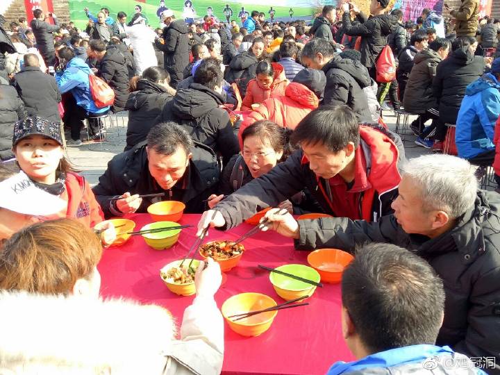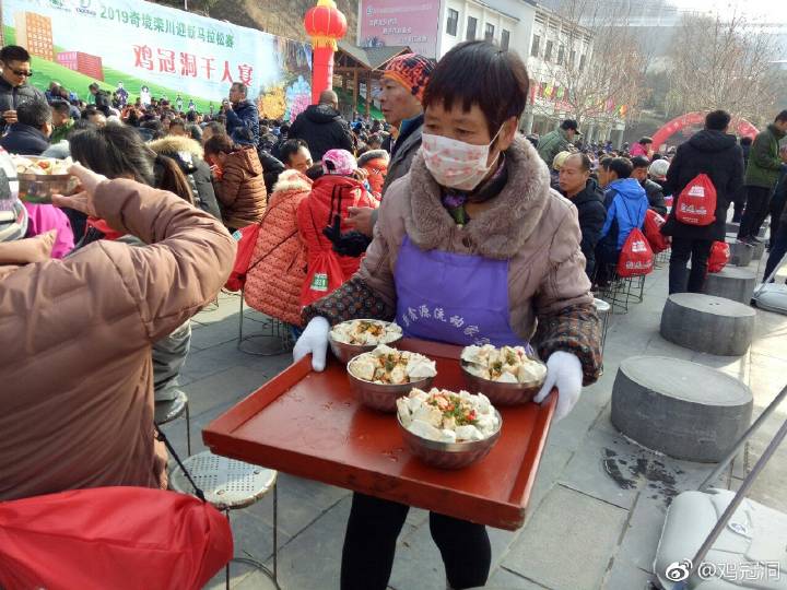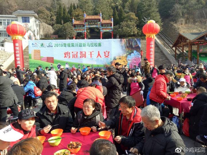 雞冠洞景區(qū)是此次欒半馬賽終點站,景區(qū)為跑馬選手精心準備了具有濃郁豫西傳統(tǒng)特色的“欒川八大碗千人宴”,在景區(qū)迎賓廣場擺放150張餐桌,供1500余人同時共品欒川八大碗特色宴。欒川豆腐、紅燒肉、粉條豆芽……在餐桌和人群間穿梭,展示了欒川特色菜肴八大碗,充滿了欒川特色鄉(xiāng)土氣息,是選用山里人自家種的蘿卜、大白菜、野山珍(木耳、香菇、拳菜、黃花菜等)、山里人自家養(yǎng)的土黑豬等綠色有機食材經(jīng)廚師改良后,以“綠色、健康、營養(yǎng)、味美”為特點精心烹飪而成,為選手提供良好的就餐體驗,場面壯觀,盛況空前。