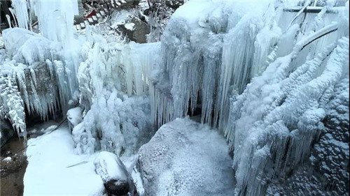 元旦小長假,木札嶺景區(qū)內(nèi)人頭攢動、驚嘆連連,山間穿行,一幅幅鬼斧神工。巧奪天成的冰掛倒掛在懸崖的石峰中,和山間的小冰瀑遙相輝映,使人一下子好似置身在清幽的童話王國,如簾如柱,如夢如幻。