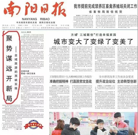 南陽(yáng)日?qǐng)?bào)頭版頭條聚焦西峽全域旅游