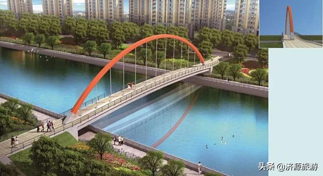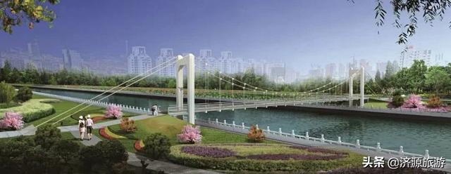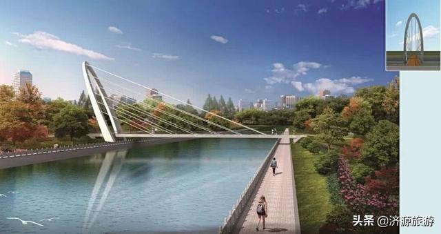以濟(jì)源“愚公移山”文化為理念,將辛勤勞動(dòng)的形象加以演化,以高聳的橋塔和富有張力的拉索為設(shè)計(jì)語言。拉索力量匯聚于橋塔,體現(xiàn)了濟(jì)源人民眾志成城、力爭上游的精神。
