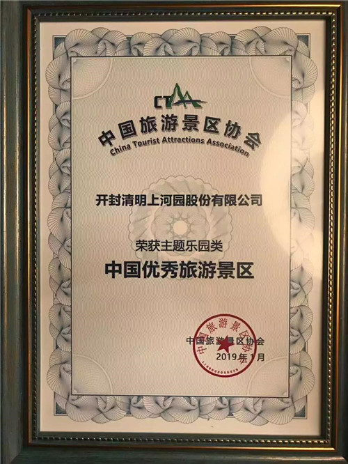 在中國優(yōu)秀旅游景區(qū)表彰活動中,開封清明上河園股份有限公司榮獲“主題樂園類”中國優(yōu)秀旅游景區(qū)殊榮。
