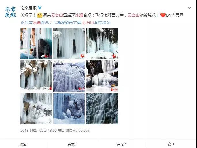 近期,各大網(wǎng)絡被“云臺山冰瀑”持續(xù)刷屏,新華社記者獨家報道!新華視點、人民網(wǎng)百萬次曝光!光明網(wǎng)、搜狐、百度、騰訊、頭條等等,全國各大媒體不斷轉(zhuǎn)發(fā)點贊!“云臺山冰瀑”以壯觀驚艷迅速全國蔓延!