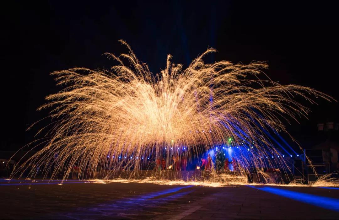 千年非遺傳承打鐵花,少數(shù)民族火把舞。