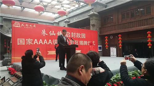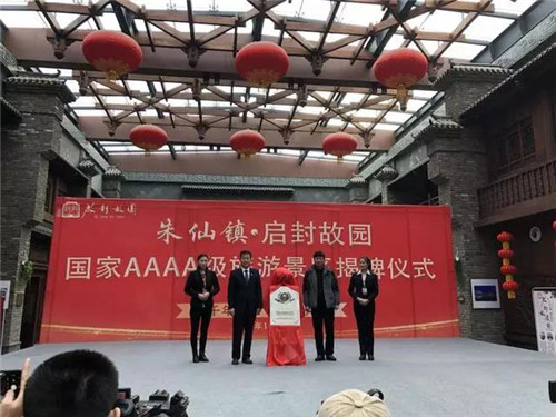 開封朱仙鎮(zhèn)·啟封故園總裁·葉耀方正式宣布并承諾·園區(qū)晉升4A景區(qū)并將在未來繼續(xù)加快步伐,完善服務提升文化融合,為更多的游客帶來全新的交互性全方位體驗。開封市委宣傳部副部長·趙偉東,中共開封市祥符區(qū)委副書記·祥符區(qū)人民政府代區(qū)長·王彥濤共同為啟封故園晉升4A景區(qū)揭牌。