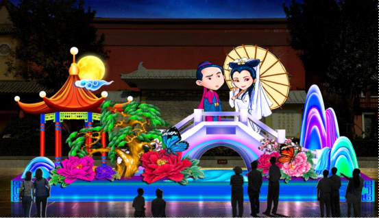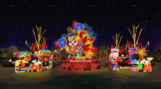 主題樂園里面賞花燈,趣味十足