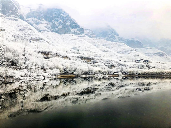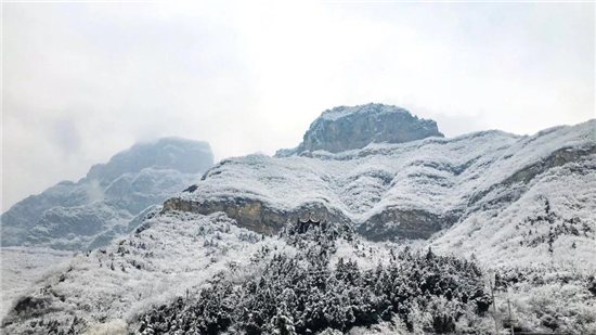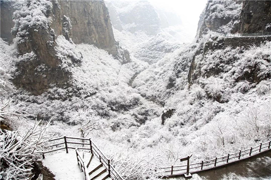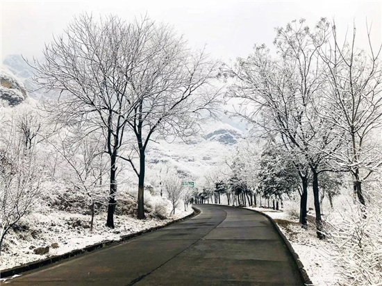 一場(chǎng)白雪讓中國猴山五龍口景區(qū)披上了銀裝,四周的一切都成了粉妝玉砌的世界。