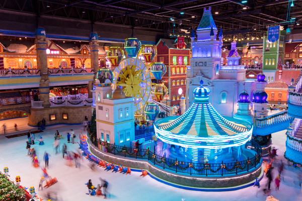 場(chǎng)館擁有圣誕世界、白色城堡、雪貓小鎮(zhèn)、翡翠谷四大特色區(qū)域,獨(dú)具特色的3000平方米冰湖面,360米炫麗冰滑道,以及8組游樂項(xiàng)目、4個(gè)主題場(chǎng)館、3個(gè)主題餐廳。