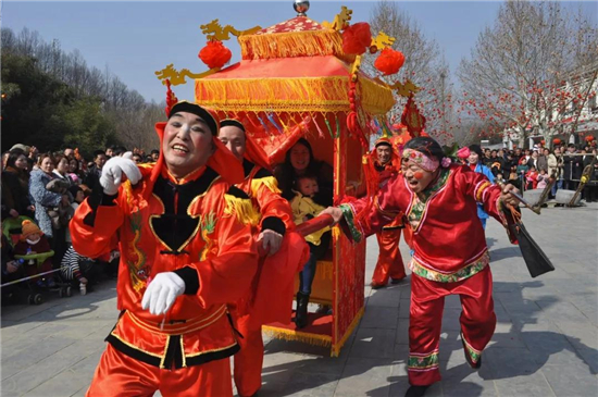 景區(qū)游客集散地:高空舞獅、變臉噴火、抬花轎坐花轎、踩高蹺、猴子戲山羊、獨輪車踢碗、頂缸、踢方桌、快閃秀、戲曲表演等等展現(xiàn)豫西特色民俗的節(jié)目,遍布景區(qū)游客集散地,場次、線路安排科學(xué)合理,倍受游客青睞。