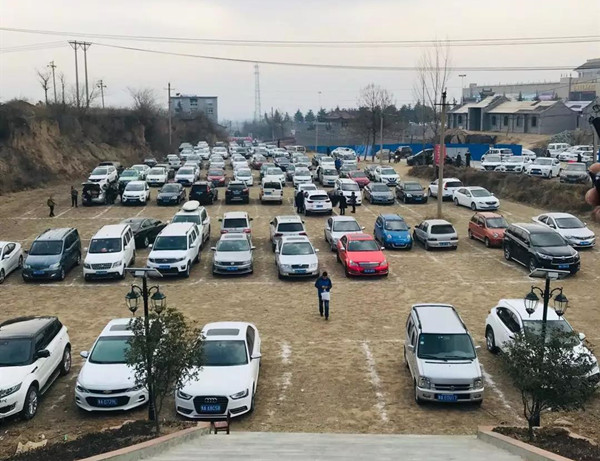 作為迎接游客的第一站,景區(qū)停車場(chǎng)率先忙碌起來。車子一輛接一輛駛?cè)胪\噲?chǎng),遠(yuǎn)處的路上,隊(duì)伍卻依然排起長龍。