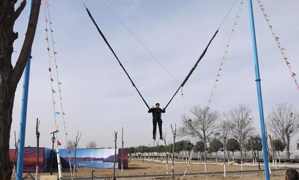 彈跳蹦極,勇敢的小伙子前來挑戰(zhàn)
