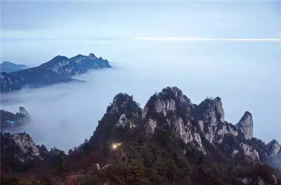 春節(jié)的前兩天,洛陽白云山還麗日晴空,然而大年初三一大早,游客們驚喜地發(fā)現(xiàn),白云山崇山峻嶺間云海翻騰,玉皇頂附近出現(xiàn)罕見云海奇觀,一眼望去,猶如蒼茫大海之波濤洶涌,云蒸霞蔚,似仙山玉宇,如瑤池瓊閣,頗為壯觀。