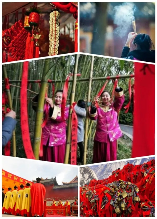 祈;顒(dòng)有朝拜祖師、焚香許愿、掛紅絲帶、掛連心鎖等。