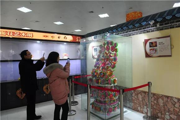 面花,或許有人見過;但一次能見到這么多色彩鮮艷、造型生動、制作考究、工序復雜且又千姿百態(tài)的面花,對于大多數(shù)游客來說還是第一次。展區(qū)所展出的近二百件面花包括人物、動物、花卉、瓜果等,花樣繁多,技藝精湛。