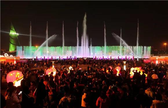 園區(qū)的聲光電音樂噴泉將盛裝亮相。美輪美奐的音樂噴泉在音樂的伴奏下,可變換26種造型,錯落有致的立體彩色噴泉翩翩起舞,顏色與聲音的碰撞灑滿黑夜,為你展現(xiàn)夜色中的精彩水舞秀。(初一至十六每天晚上19:00,20:00各一次)