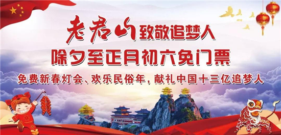 歡樂過大年,致敬追夢人!2019年2月4日至2月10日(大年三十至大年初六),老君山景區(qū)對全國人民免門票(老君山門票門市價100元/人)。