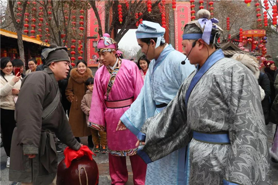 春節(jié)期間,清明上河園景區(qū)新上的項目,財神納福、高臺花鼓、民俗演出等,他們的精氣神兒以及春節(jié)期間獨有的喜慶氛圍,參與其中,那可真是年味兒十足!