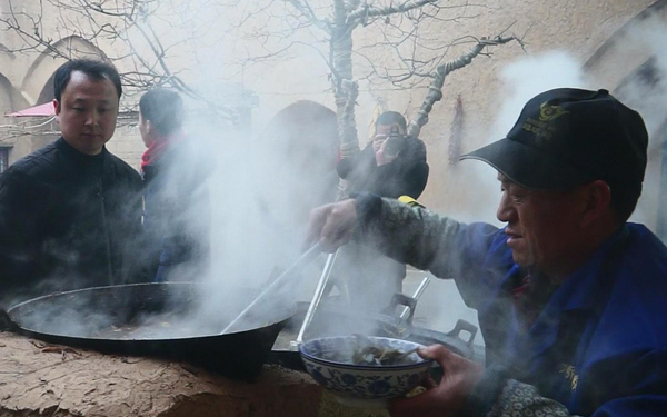 在景區(qū)贠家院內(nèi)人頭攢動(dòng),燃燒著烈火的灶臺(tái)后面拖著七口大鍋,好似一條黑龍?jiān)谕淘仆蚂F,陣陣炊煙升起、白色的熱氣幾乎籠罩住整個(gè)院子上空,伴隨著響亮的嗩吶聲、鑼鼓聲、游客的笑語(yǔ)聲,一碗碗熱辣而滾燙的農(nóng)家菜就上桌了,這擺的滿滿當(dāng)當(dāng)、噴香四溢的一桌子,就是著名的陜縣“十碗席”。據(jù)了解,陜縣十碗席已有三百余年歷史,系陜州名吃珍品。光緒二十八年(1901)九月初八慈禧太后及德宗皇帝從西安回鑾北京路過(guò)陜州,當(dāng)?shù)毓賳T為取悅慈禧和德宗,遂安排當(dāng)?shù)孛麖N用十碗水席進(jìn)獻(xiàn),太后和德宗品嘗純正地道的十碗席后大悅,且親口夸贊:“十碗水席,十全十美”。此后,豫西“十碗水席”名聲大振,當(dāng)?shù)丶t白大事用十碗席招待上賓相沿成習(xí),到現(xiàn)在“十碗水席”已久負(fù)盛名,揚(yáng)名天下。今天地坑院景區(qū)把這套傳統(tǒng)宴席挖掘的淋漓盡致,從傳統(tǒng)的記賬方式到做菜的每一個(gè)把式,再到每一味作料都進(jìn)行了細(xì)致的研究,用心讓每一位游客感受地道的傳統(tǒng)特色味道,用心做到讓每一位游客賓至如歸。