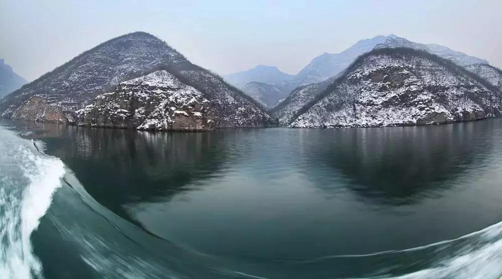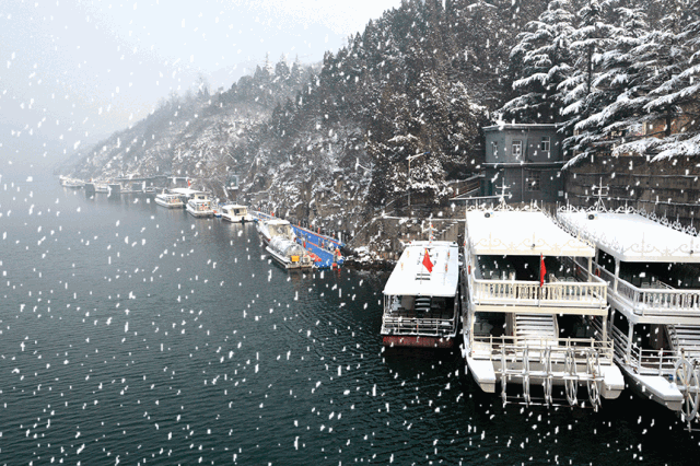 雪中的大泉湖,依然暢流不息,游船不停航哦