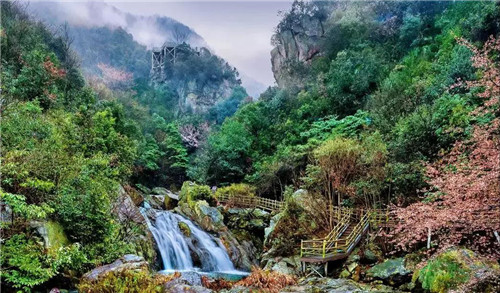 沿途有奇石秀峰,如猛獸奇鬼,森然欲搏人,大小瀑布散見(jiàn)全程,雖不如李白“飛流直下三千尺,疑是銀河落九天”的磅礴,也有徐凝“今古長(zhǎng)如白練飛,一條界破青山色”的壯觀。