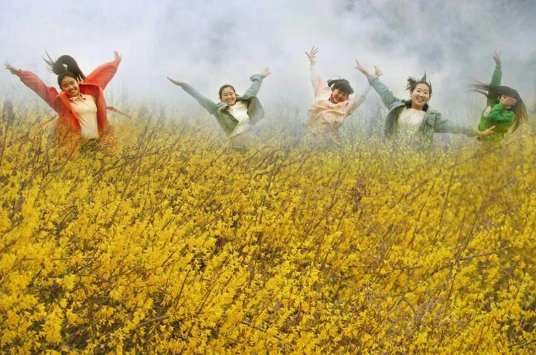 除了粉嫩的桃花,更有這花開如海的連翹,漫山遍野盡情綻放,實在是美不勝收。