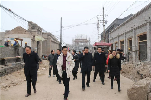 專家組在朝歌老街歷史文化街區(qū)保護和修復工程施工現(xiàn)場參觀考察
