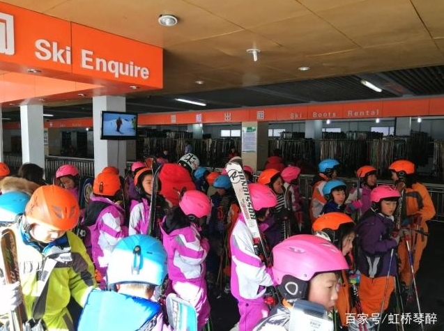 在雪具大廳,洛陽伏牛山滑雪度假樂園的工組人員們細心地幫孩子們穿上雪服、雪鞋,并為小朋友找來頭盔、手套等貼心裝備;┙叹殏兡托牡亟o孩子們講述滑雪的基本技巧和安全常識,并按隊形排列,帶領大家先后進入雪場。